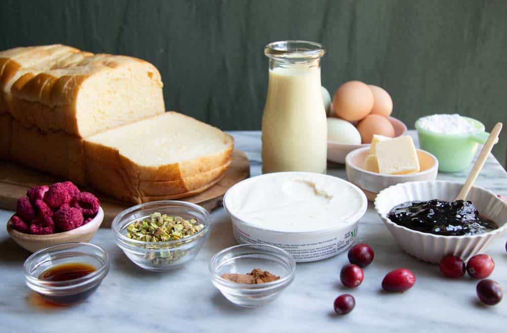 The filling alone is enough to win you over: softened mascarpone sweetened with a little powdered sugar and vanilla, layered with cranberry jam for a bright, festive pop. It’s rich but not heavy, sweet but not cloying, and exactly what your favorite loaf of brioche was made for.
